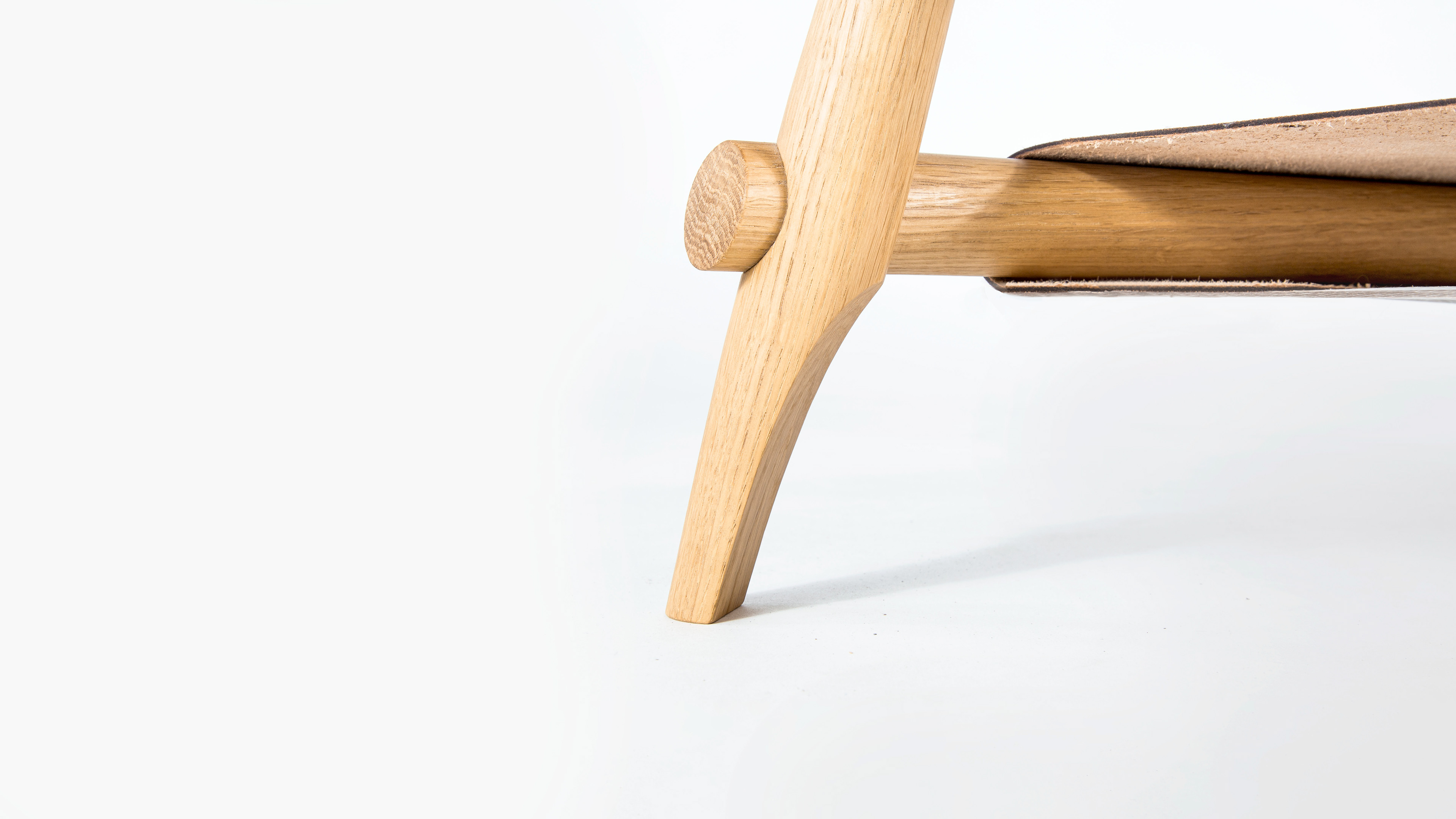 Solid Oak & Natural Leather sling H: 410mm x W: 635mm x L: 935mm
